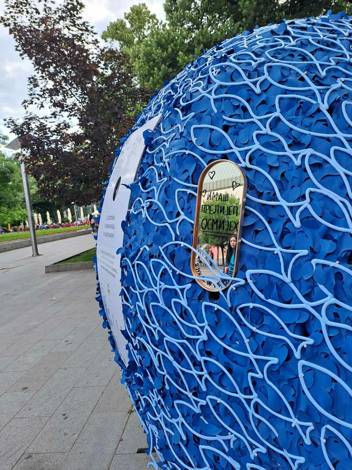 Po centru Banjaluke djevojke su postavile preko 30 malih ogledala na kojima su bile lijepe poruke i dan i vrijeme održavanja performansa. Ogledalo je prije svega služilo da sve one koji se ogledaju u njemu obraduju lijepom porukom ali i kao svojevrsna najava njihovog performansa.